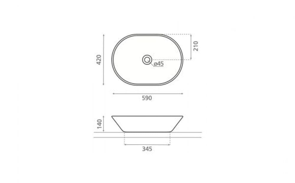Lavabo sobre encimera porcelana oval 590x420x140 mm