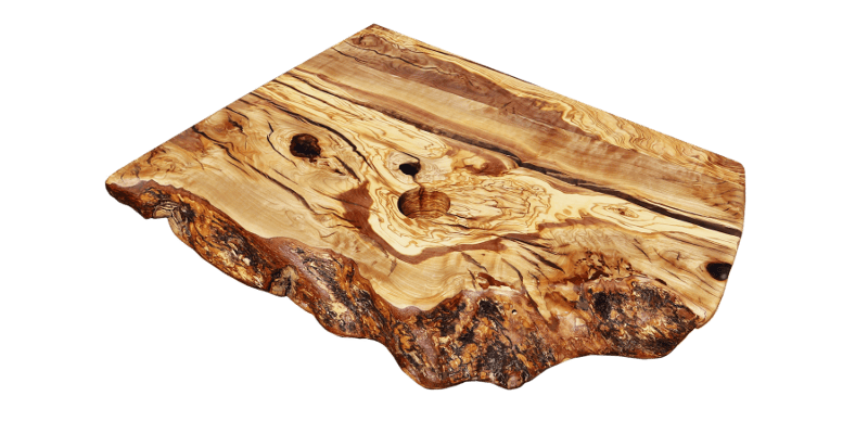 Encimera de madera de olivo con canto frontal natural